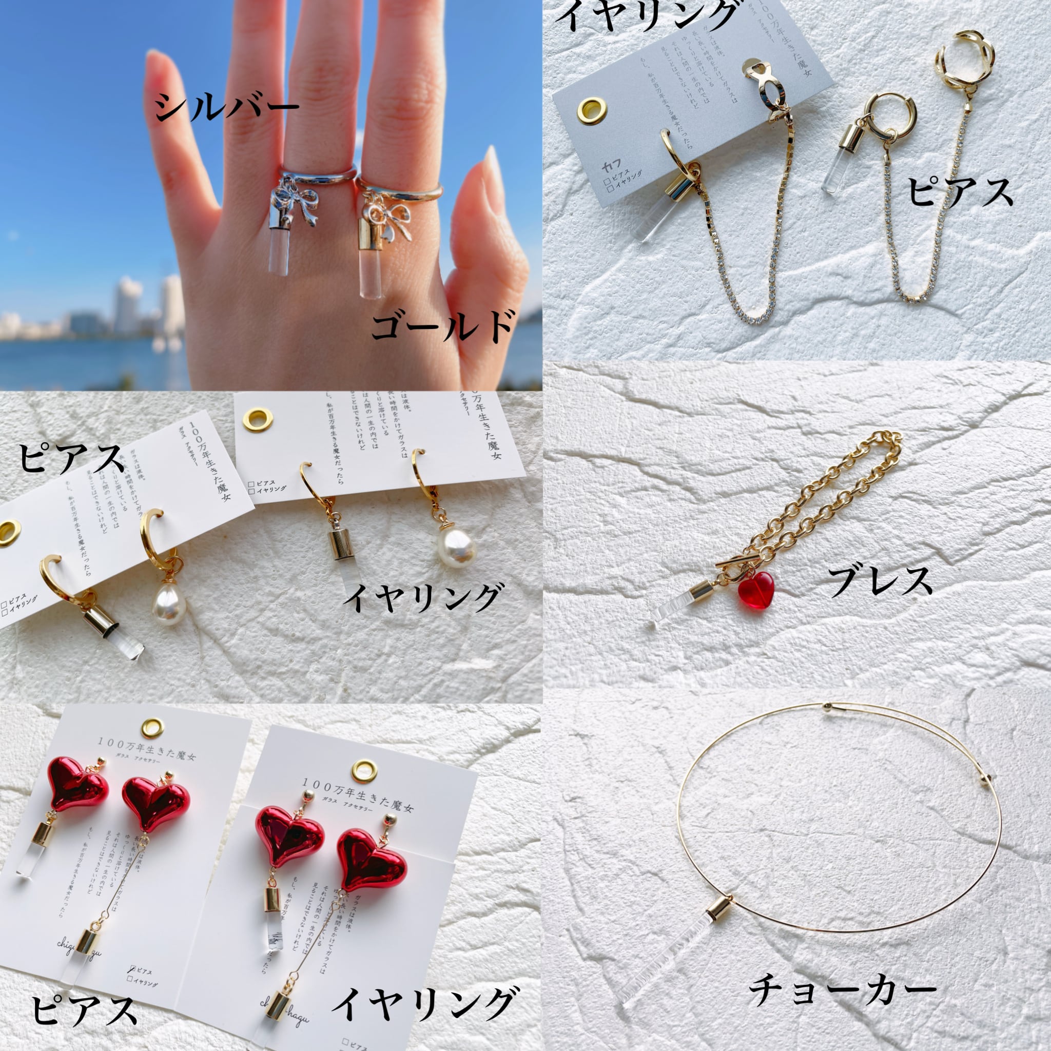 全てのアクセサリーが手作りの為、大きさや形に若干の違いがございます。